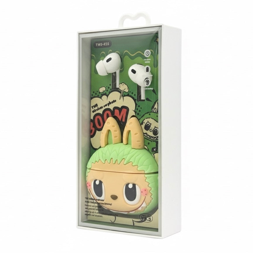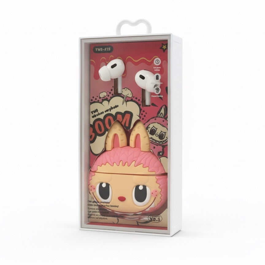 Incluyen case protector Labubu en colores rosa, verde o café, con diseño moderno y batería de larga duración. Perfectos para escuchar música, videollamadas o usar en el día a día.